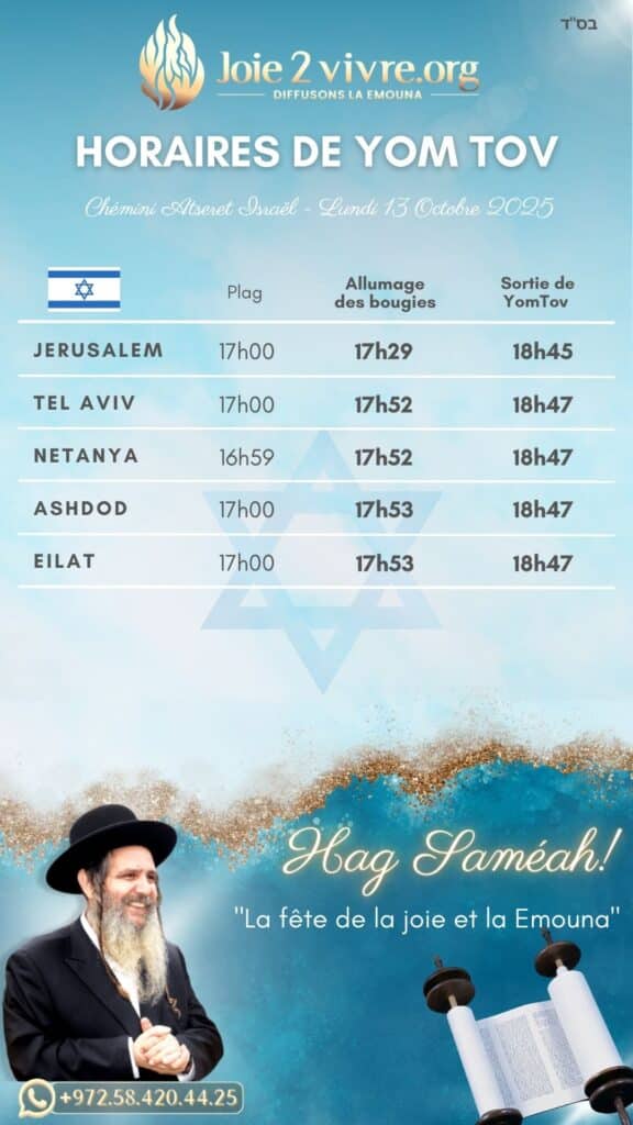 Chémini Atseret Israël – Lundi 13 Octobre 2025